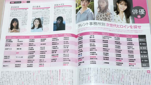さておき浜辺美波さんを含む、有名芸能事務所の看板女優が一覧で掲載されていた。こう見ると、実力のある事務所は、年代ごとに実力派女優を抱えている