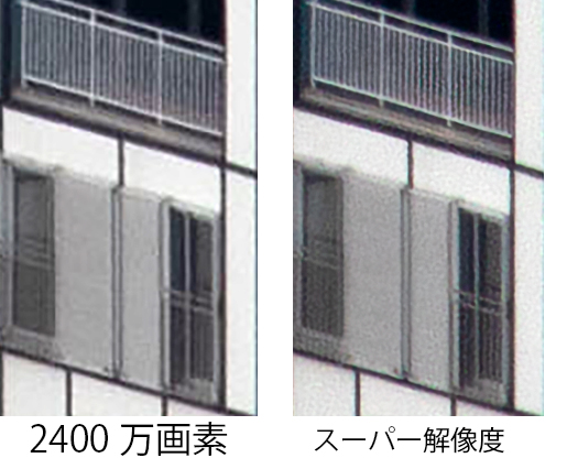 RAW現像の画面で「スーパー解像度」のオプションを選び現像。なんと出力された画像は4倍の9600万画素、いわゆる1億画素機が誕生だ