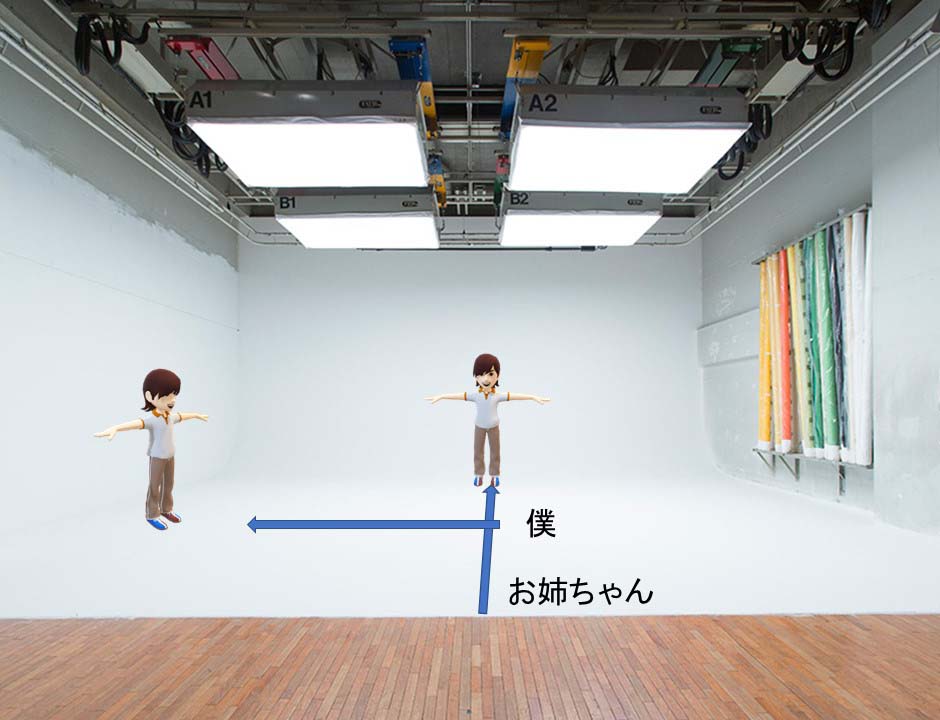 ここで権利を主張して、僕の後に撮るお姉ちゃんを排除する手もあったけど、そんなヒヨッ子のお姉ちゃんをいじめるのも可愛そうなので、僕はスタジオの横壁を利用して、直角に撮ることにした