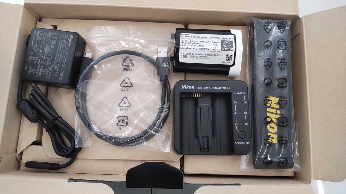 あとは簡単な初期マニュアルとストラップなど。ストラップは「NIKON Z」と書いてあるだけ。型番が入っていないので今後出る機種も共通化されるかも知れない。コスト削減なんだね。僕は使い慣れたNPSのプロストラップと「交換」してもらった。「交換」というのがミソで、製造番号と名前を付属のストラップと共に差し出さないともらえない。プロストは高価で取引されているので横流し防止だろうなぁ