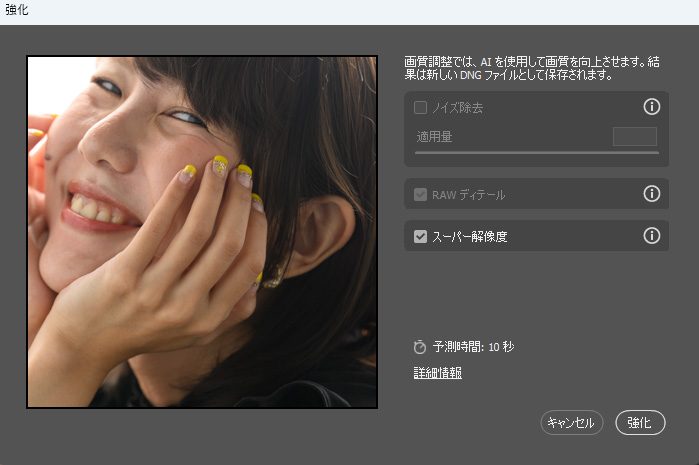 スーパー解像度、処理に約10秒かかる