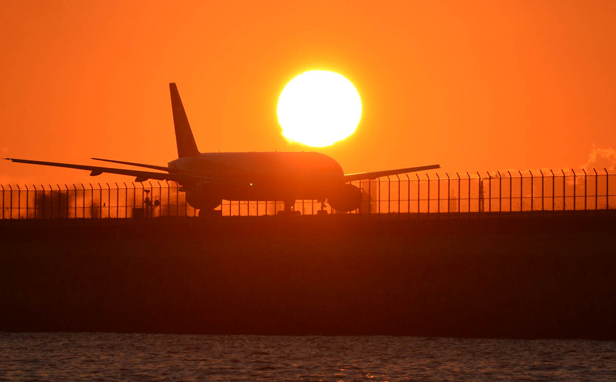 小回りのきいた18トンの小さな船なので写真撮影には最高だ。例えば夕日のシーンで航空機がうまく重なる場所でビミョウに位置調整してくれる(写真)。普通のツアーだと決められたコースを巡るだけだけど、このサンタバルカ号はモデルに対して撮影者が動くような感じだ